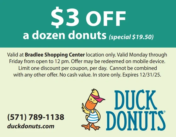Valid at Bradlee Shopping Center location only. Valid Monday through Friday from open to 12 pm. Offer may be redeemed on mobile device. Limit one discount per coupon, per day. Cannot be combined with any other offer. No cash value. In store only. Expires 12/31/25.