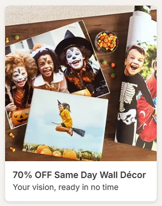 Shop in store and take 70% off same day wall decor for a limited time.