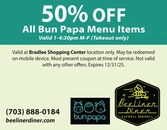 50% OFF All Bun Papa Menu Items