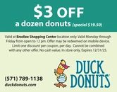 Duck Donuts offers warm, delicious donuts made to order with your choice of coating, topping and drizzle.